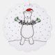 This beautiful illustration by Helen McCartney Designs shows a fluffy polar bear wearing a Christmas hat. The bear is holding a banner with a name of your choice.