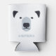 A fun and minimal winter can coozie tailored to adults and kids alike. It features a minimal yet fun illustration of a polar bear head with your personalized name underneath.
