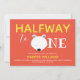 A baby half birthday party invitation with a polar bear theme in orange, yellow, and white. It features a cute bear face as the first letter of the word “One”. Simply customize this invite, add it to your cart, and enjoy celebrating your baby’s first six months!