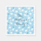 Personalized Christmas paper napkins featuring cute polar bears with falling snowflakes on an ice blue background with the family name in a script bluey-grey font. Perfect for entertaining over the holiday season! Designed by Thisisnotme©
