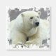 Polar bear stretched out and resting square magnet.