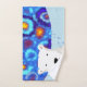 It was advertised as NAVY blue and the color sent was greenish blue. I am disappointed in this product. Quality and printing are great as are all my other orders. As you can see in picture the tea towel on right is perfect, hand towel not so much! Print was awesome and just as ordered