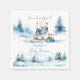 Polar bear arctic winter we can bearly wait baby shower tableware personalized template napkins, watercolor cute polar teddy bear wearing a blue scarf sitting on ice rock snowy pines winter themed baby shower welcome sign personalized baby shower napkins
