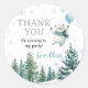 Our Polar Bear Classic Round Birthday Stickers are the perfect themed labels for a winter or Arctic themed birthday party. Each sticker features a cute polar bear holding a balloon in a pine forest covered in snowflakes. The colour palette includes cool tones such as icy blue, white and silver to match the cold theme. Ideal for attaching to party favours, gift bags or treats, adding a unique and personal touch to winter celebrations.