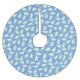 Here's a pretty winter theme Holiday tree skirt that will complement a tree decorated mostly in blue and silver. It features a hand drawn light blue polar bear and snowflake pattern on a sky blue background. Cute!