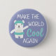 This button features a white polar bear with light blue swim ring and cap to raise awareness about climate change to make the world cool again.