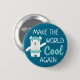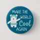 This button features a white polar bear with light blue swim ring and cap to raise awareness about climate change to make the world cool again.