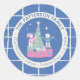 Sweet blue round Holiday envelope seal featuring a couple of polar bears decorating a Christmas tree . Personalize it with your family's name and address .