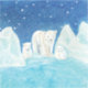 Mom and two baby polar bears in arctic winter. Book illustration.