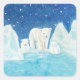 Mom and two baby polar bears in arctic winter. Book illustration.