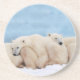 Sandstone coaster is shown with a photo print of cute polar bears.