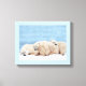 Wrapped canvas art is shown with a photo print of cute polar bears and with a ice blue canvas border colour.