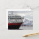 The Hurtigruten cruise ship arriving harbour in late Spring, in the background the mountains surrounding Tromsø are still covered with white snow.