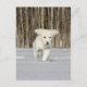 Puppy or polar bear cub? Adorable golden retriever pup playing in the snow with it's light coloured coat seeming almost white.