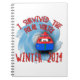 I survived (barely) the Polar Vortex of Winter 2014! Funny design features a little penguin all wrapped up against the swirling vortex studded with snowflakes, behind him. Text reads I SURVIVED THE POLAR VORTEX WINTER 2014.