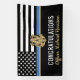 This design features a police force flag with black and white stripes, and a thin blue line stripe as well. A great way to say congratulations to the new police academy graduate. Customize with the name of the graduating law enforcement officer in gold. Celebrate this milestone in style!
