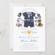 Celebrate your little officer on the way with this adorable police-themed baby shower invitation. Featuring a charming baby police outfit, cute accessories, and a coordinating navy blue stripe backing, this design blends playful charm with a clean, modern look. Perfect for boy baby showers, law enforcement families, or “Calling All Units” themed events, this invitation creates a polished and memorable first impression. Fully customizable for your event details.