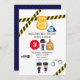 Police themed party invitation with a simplistic black and white text layout suitable for boys and girls customizable to your event specifics.