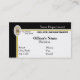 Police business card with oval patrolman badge. Colours are black, white with gold line.