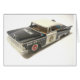 The police car is an old metal toy. Many different types of products are available with the image. All ages will enjoy merchandise with this imprint from a forgotten and different era.