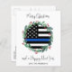 Send Merry Christmas greetings to friends and family with this Unique Thin Blue Line Police Christmas Card - Holiday wreath in a USA American flag design in Police Flag colours, modern black blue and white design with holly and berries. Personalize with family name. This police Christmas card is perfect for police families or police department christmas cards. These budget merry christmas postcards need to be mailed as oversized postcards so may incur standard postage fees but they don't need an envelope or a return address label. COPYRIGHT © 2020 Judy Burrows, Black Dog Art - All Rights Reserved. Police Christmas Thin Blue Line Budget Holiday