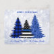 Send Merry Christmas greetings to friends and family with this Unique Police Christmas Card - Thin Blue Line, black and blue plaid and blue glitter trees on a silver snow glitter background design . Personalize with family name.. This police Christmas card is perfect for police families or police department christmas cards. COPYRIGHT © 2022 Judy Burrows, Black Dog Art - All Rights Reserved. Police Christmas Thin Blue Line Glitter Plaid Tree Holiday Postcard