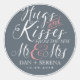 Vintage et rustique design étiquette de design mariage faveur autocollant. Décoré avec des lettres manuscrites de police de script de calligraphie. Les câlins et les baisers du nouveau M. et Mme Customisent le nom de la mariée et du marié. Parfait pour les mariages, fiançailles, douche nuptiale, fête d'anniversaire ou toute occasion spéciale. Vous pouvez également customiser la couleur arrière - plan pour adapter votre couleur de thème.