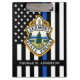 Thin Blue Line Police Department Clipboard - American flag in Police Flag colours, modern black and blue design . Customize with your department logo, and personalize with police officers name. This personalized law enforcement clipboard is perfect for police departments and law enforcement . COPYRIGHT © 2020 Judy Burrows, Black Dog Art - All Rights Reserved. Police Department Custom Logo Law Enforcement Clipboard