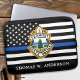 Thin Blue Line Police Department laptop sleeve - American flag in Police Flag colours, modern black and blue design . Customize with your department logo, and personalize with police officers name. This personalized law enforcement laptop sleeve is perfect for police departments and law enforcement . COPYRIGHT © 2020 Judy Burrows, Black Dog Art - All Rights Reserved. Police Department Custom Logo Law Enforcement laptop sleeve