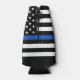 Thin Blue Line Bottle Cooler - USA American flag design in Police Flag colours. This personalized police department cooler is perfect for police officer gifts, police party favours, and to hand out out police promotional or support events.