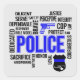 These square stickers have the word Police in blue along with multiple words that describe what a police officer is and does on a light grey background. These would be great for a police retirement party or a party for someone who graduated from the police academy or any police activity.