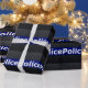 modern style Police diamond plate made of steel thin blue line design