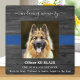 In Loving Memory ~ Honor your beloved police dog K9 officer and with this Thin Blue Line Police Memorial Photo plaque. Personalize with your K9 officer's photo, name and dates. Perfect for police K9 handler memorial for family or police departments to honor a fallen police dog. In Loving Memory Police Dog Memorial Plaque. COPYRIGHT © 2020 Judy Burrows, Black Dog Art - All Rights Reserved. Police Dog Memorial K9 Officer In Loving Memory plaque
