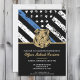 Honour the dedication and hard work of a new law enforcement officer with this customizable police graduation invitation. Featuring the a police badge and the police force flag with bold black and white stripes and a proud thin blue line, this design symbolizes strength, service, and sacrifice. The invitation is personalized with the graduate’s name in gold lettering, making it a memorable keepsake for friends, family, and fellow officers. Perfect for celebrating a police academy graduation, promotion, or milestone in a future officer’s career. Invite your guests in style and show support for the newest member of the thin blue line community.