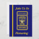 This blue and gold invitation is decorated on the front with a Police Lieutenant's custom badge logo. You can customize this card by placing your information into the boxes provided. You can also customize the badge on the front and back with the honoree's name.