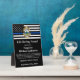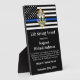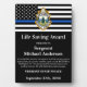 Celebrate and show your appreciation to an outstanding Police Officer with this Thin Blue Line Police Life Saving Award - American flag design in Police Flag colours , modern black blue design with custom police department logo. Personalize this police officer award with officers name, text with law enforcement department name, logo and community, and date of issue. Perfect of police retirement awards, police service awards, and police recognition and appreciation. COPYRIGHT © 2020 Judy Burrows, Black Dog Art - All Rights Reserved. Police Life Saving Department Custom Logo Desk plaque