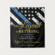 This design features a police force flag with black and white stripes, and a thin blue line stripe as well. "The Legend is Retiring" text sits above all of the party details for the retiring law enforcement officer, sheriff, captain, or chiefs retirement party details.
