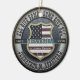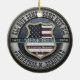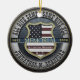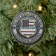 A memorial ornament featuring a thin blue line, a shield and a US Flag.