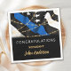 Congratulations! Add the finishing touch to your police promotion party with these thin blue line police congratulations napkins and party supplies. USA American flag design in Police Flag colours, black and blue with gold string lights design. This police officer promotion napkins are also perfect for police retirement napkins, police graduation and police academy graduation party.. See our thin blue line collection for matching police retirement invitations, police gifts, party favours, and supplies. COPYRIGHT © 2020 Judy Burrows, Black Dog Art - All Rights Reserved. Police Officer Promotion Party Congratulations Napkins