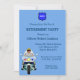 Retirement invitation for a retiring police officer. Design has a police motorcycle and a police officer with the words you are invited to a retirement party. Put your police department initials in the badge at the top of the invitation. Easy to customize with your party details.