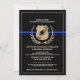 Classy badge and thin blue line design for these police officer retirement invitations.