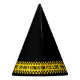 Police Birthday Party Hat featuring a modern design with yellow police line do not cross tape. For the perfect police birthday party, detective game night or for a crime themed escape room event. Customizable products for a memorable celebration.