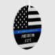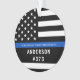 Thin Blue Line Police Officer Christmas Ornament - American flag in Police Flag colours, modern black and blue design . Customize with your department name, and personalize with police officers name and badge number. This personalized law enforcement ornament is perfect for police departments and law enforcement officers, stocking stuffers and christmas gifts to your police officers. Order these police ornaments bulk wholesale for the police academy or police department gifts, police christmas stocking stuffers. COPYRIGHT © 2020 Judy Burrows, Black Dog Art - All Rights Reserved. Police Personalized Thin Blue Line Law Enforcement Ornament