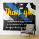 Thank You! Congratulations & Happy Retirement! Add the finishing touch to your police retirement with these thin blue line police retirement banners and party supplies. USA American flag design in Police Flag colors, modern design with gold script thank you. This police retirement collection will be a favorite. Personalize with officers name, and personalize text for retirement party or police anniversary. See our thin blue line collection for matching police retirement invitations, police gifts, party favors, and supplies. COPYRIGHT © 2020 Judy Burrows, Black Dog Art - All Rights Reserved. Police Retirement Blue Gold Script Law Enforcement Banner Tapestry