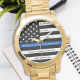 Police Retirement Gift Thin Blue Line Flag Gold Watch