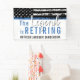 This design features a police force flag with black and white stripes, and a thin blue line stripe as well. "The Legend is Retiring" text sits above the customizable name of the retiring law enforcement officer, sheriff, captain, or chief. Celebrate this milestone in style!