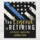 This design features a police force flag with black and white stripes, and a thin blue line stripe as well. "The Legend is Retiring" text in gold sits above the customizable name of the retiring law enforcement officer, sheriff, captain, or chief. Celebrate this milestone in style!