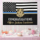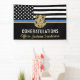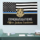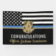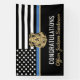This design features a police force flag with black and white stripes, and a thin blue line stripe as well. Customize with the name of the retiring or graduating law enforcement officer, sheriff, captain, or chief. A great way to say congratulations to the new retiree or graduate for their retirement or graduation from police academy.