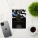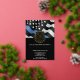 This design features a police force flag with black and white stripes, and a thin blue line stripe as well. The police badge and gold text sits above all of the party details for the retiring law enforcement officer, sheriff, captain, or chiefs retirement party details.