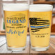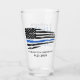 The Man The Myth The Legend! Thin Blue Line Police Retirement Beer Glass . USA American flag design in Police Flag colours, modern trendy black white and blue design. Personalize with police officers name, department and retirement date. See our collection for matching police retirement invitations, police gifts, police retirement party favours, and supplies. COPYRIGHT © 2022 Judy Burrows, Black Dog Art - All Rights Reserved. Police Retirement Thin Blue Line Personalized Glass